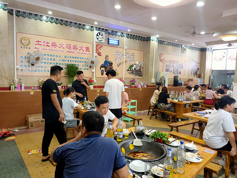土锅土灶土风情,家香家味家感觉!土灶柴火鸡、柴火鱼选用正宗菜籽油、花生油、用木柴烧火现场烹制、原汁原味、绿色健康、吃的放心、吃出久违的农村风味寻找到儿时童真的记忆,妈妈的味道!店面文化主题从视觉(文化饰品)、听觉(音响语言)、味觉全方位展现乡村文化,让身在众多成年奔波的人有回家的亲切体验!