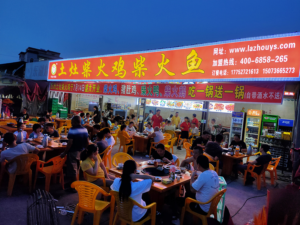 店面介绍:广州花都花山店是一家专业推广特色土灶柴火鸡、柴火鱼、柴火羊肉、柴火狗肉的餐饮连锁机构。本店推出传统乡村土灶柴火鸡,柴火鱼,柴火羊肉,柴火狗肉农村大铁锅等,劈柴生火,独家秘方,口味独特,现场制作,秉承(绿色,营养,健康)的宗旨,菜肴原滋原味,清而不淡,香而不腻,其别具特色就餐模式,温馨舒适的就餐环境,是你商务宴请,亲友欢聚,品农家特色美食的最佳之选!