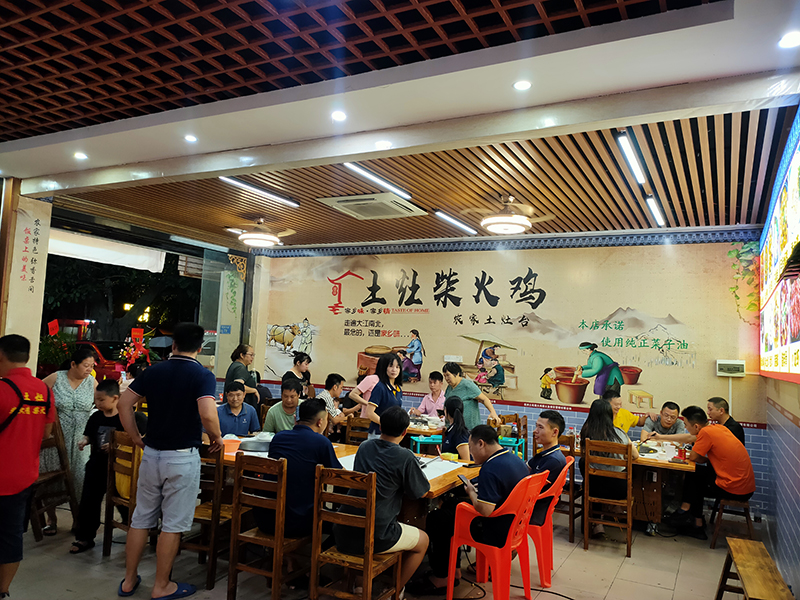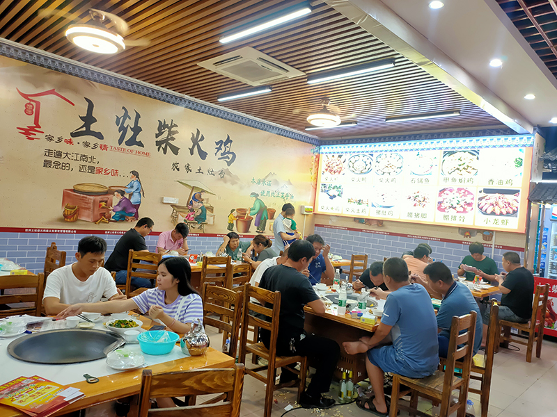 土锅土灶土风情,家香家味家感觉!土灶柴火鸡、柴火鱼选用正宗菜籽油、花生油、用木柴烧火现场烹制、原汁原味、绿色健康、吃的放心、吃出久违的农村风味寻找到儿时童真的记忆,妈妈的味道!店面文化主题从视觉(文化饰品)、听觉(音响语言)、味觉全方位展现乡村文化,让身在众多成年奔波的人有回家的亲切体验!